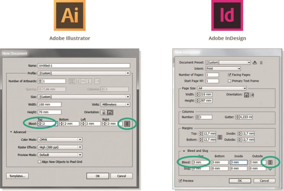 Вылеты (припуски к обрезному формату) обязательны, когда часть изображения уходит под обрез.